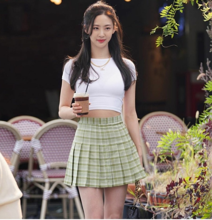 다솜 씨는 평소 체형이 돋보이는 원피스를 즐겨 입는데, 골반이 꽤 넓은 편이고 허리가 가는 편이라 무릎에서 15cm 정도 올라오는 길이의 미니스커트를 선택한다고 한다.