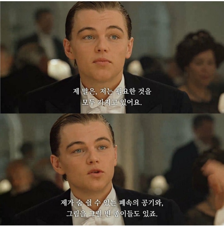 한편, 타이타닉호는 빙산에 부딪혀 가라앉기 시작하여 승객과 승무원들 사이에 혼란과 공포를 불러일으킵니다. 배가 위험하게 기울어져 북대서양의 얼음물속으로 가라앉기 시작하면서 잭과 로즈는 목숨을 걸고 싸웁니다. 그들은 매달릴 떠 다니는 문을 찾았지만 잭은 저체온증에 굴복하여 로즈의 팔에서 죽고 그녀는 혼자 살아남습니다.